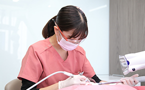 毎日の歯みがきで落としきれないバイオフィルムを専用の器機を用いて除去します。歯の表面に、歯垢を付着しにくくするほか、爽快感も得られます。